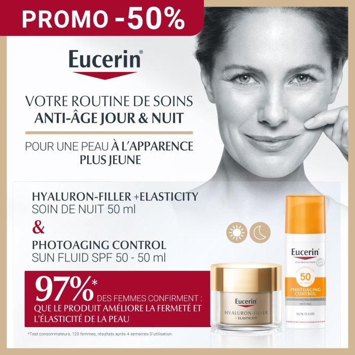 EUCERIN HYALURON FILLER + ELASTICITY SOIN DE NUIT 50 ML + EUCERIN PHOTOAGING CONTROL SPF 50+ – Trouvez chez citymall, La référence N1 de la parapharmacie en ligne au Maroc.